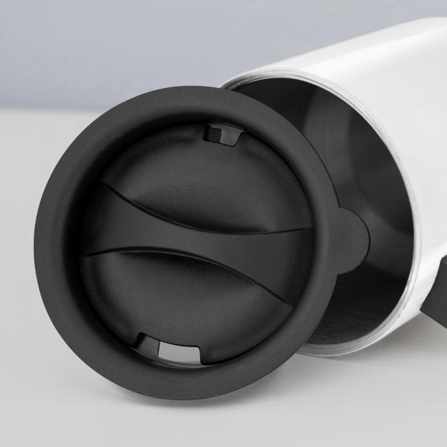 - Couvercle avec une ouverture rotative pour boire, dans un plastique qui n’altère pas la saveur des boissons.